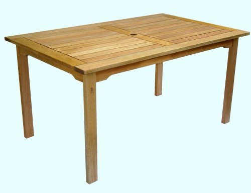 This beautifully crafted and elegant Eucalyptus all wood rectangular table looks great in any backyard, patio, or poolside setting. Features: Constructed of solid, Eucalyptus Wood. Finish: Wood Dimensions: 59" x 35" x 29" This item is FSC approved. The FSC Logo identifies products which contain wood from well managed forests certified in accordance with the rules of the Forest Stewardship Council (environmentally appropriate, socially beneficial and economically viable).