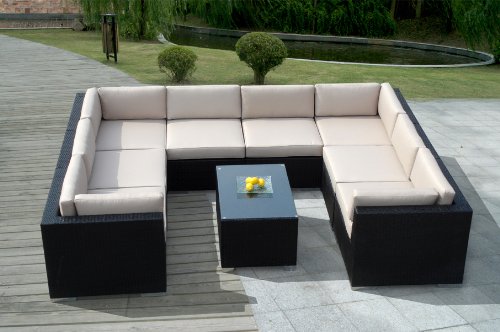 Genuine Ohana Outdoor Patio Wicker Furniture 9pc All Weather Elegant Couch Set with Beige Cushions Review