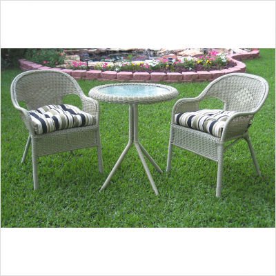 3186-CH Finish: Chocolate Cushions Sold Separately Features: -Set includes a 25'' outdoor wicker table, and 2 small bistro chairs. -Made from strong 4MM wicker, for longer stronger support. -Complete UV light and waterproof protection for various harsh climates. -Table is easy to put together and is equipped with outdoor glass top. -Perfect for small areas, apartments, coffee shops, etc.. -Steel frame support for long lasting durability and strength. -Available in several finishes. -Cushions not included. Corresponding cushion is BLN1027. Specifications: -Chairs dimensions: 31'' H x 21'' W x 22'' D. -Table dimensions: 28'' H x 25'' W x 25'' D.